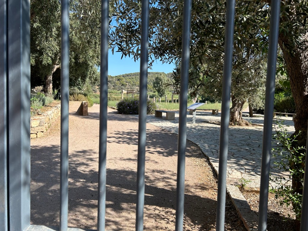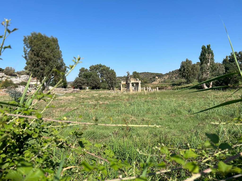 Upon our arrival at the site, we made lovely acquaintances with a firmly locked gate. The Sanctuary of Artemis was closed today, which happens fairly regularly in Greece. Sites are sometimes closed on Tuesdays, depending on previous traffic— it’s safe to assume not many people visited this site in May. Nevertheless, one of my classmates, Nava Camelot, had previously done some research on this site and presented her findings in front of the fence.