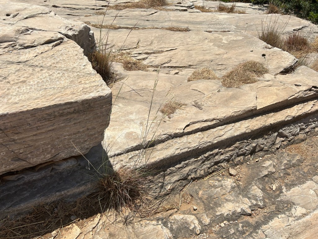 One very important thing to note about Greece is that there are pieces of broken pottery everywhere. Those are called sherds, not to be confused with ‘shards’ which are broken pieces of glass. One very fun thing to do while exploring archeological sites in Greece is to look for loose sherds on the ground, and try to identify them. Today at Sounion, I found a beehive sherd!