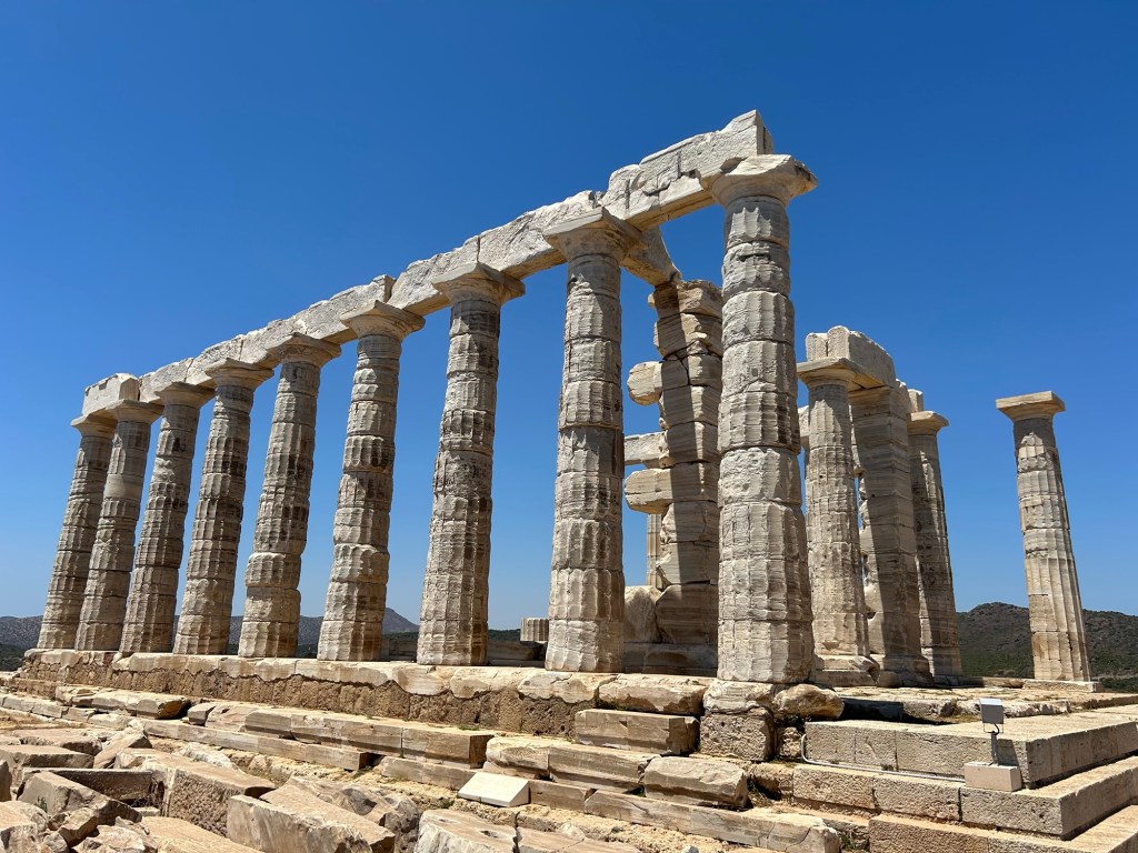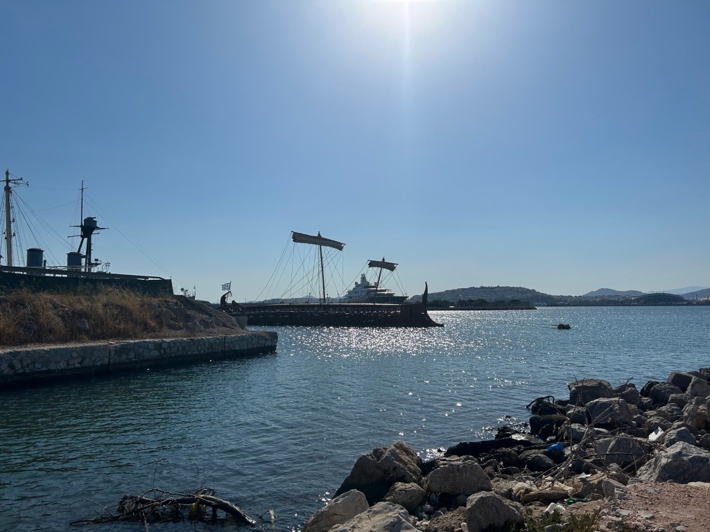 Our first stop of the day was at Brauron, which houses the Sanctuary of Artemis. We also went to Thorikos’s ancient theater, and the Temple of Poseidon at Sounion. In addition, we then checked out the reproduction of a Trireme at the Piraeus (its beak was gorgeous, truly) and we are ending the day with an overnight ferry to Crete.