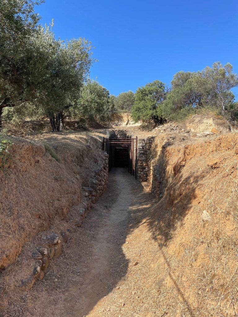 Looking at the sites together, one thing that struck me was how different I felt at two grave sites. I felt rather indifferent towards the Minoan tomb, possibly because we have seen many at this point, or because I have little to no connection with them as they seem so far in the past. This was completely different for me when visiting the World War II site, as it is so much more recent, and I have relatives that lived through it. The disconnect with death that comes with time was very present here, and I feel that the lack of artefacts and grave goods pushes that disconnect even further. We are not seeing the tombs as they originally were, and I feel that this pushes the modern day viewer further from time long gone, when we should be attempting to bridge the gap with cultures long since past.