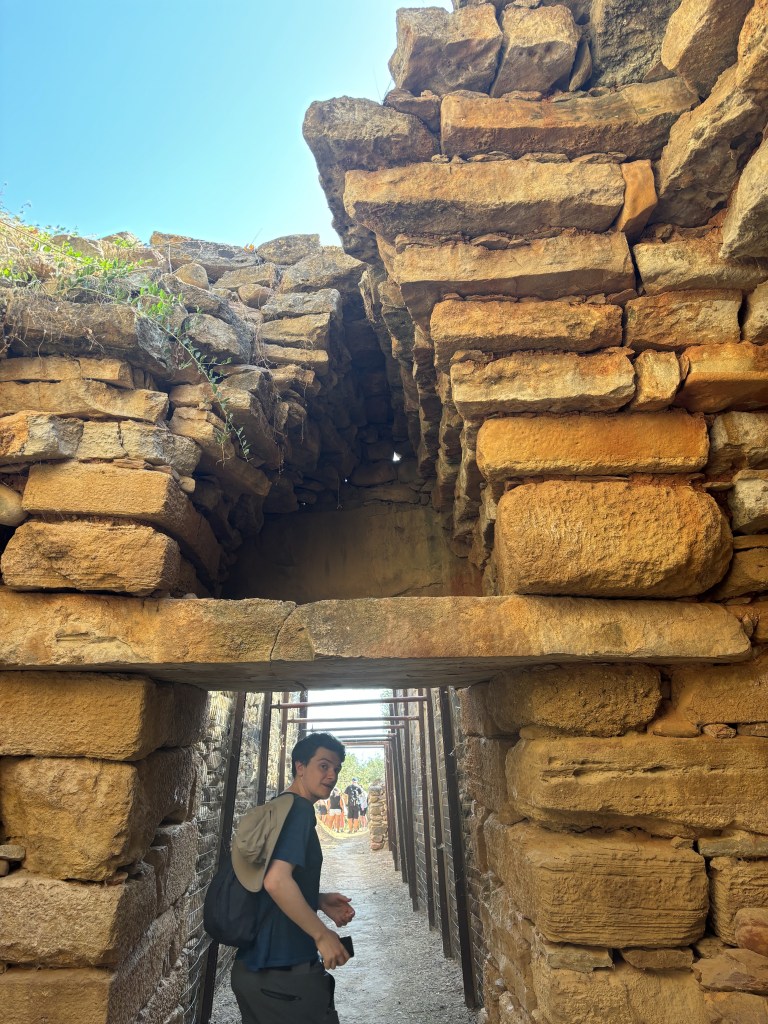 The tholos at Maleme is remarkable for many reasons and Matt covered them more than adequately. Looking at the relieving triangle from behind, however, shows how it works. From the front it looks solid, but in terms of architecture if it was solid it would collapse. It works because it is hollow and this is apparent only from the back side. I use Charles as a model for height (as I shamelessly used 6 of you to show how theatres were also statue galleries) and to give a shout out to his report at Maleme.