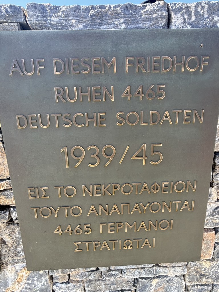 To agree with Hanna, my fellow translator of a Latin inscription in the Mesara museum, the German grave site is horrific. Several of us discussed this in soft tones on our way back down to the bus, as I suspect most of the rest of you did, too. The numbers speak for themselves: