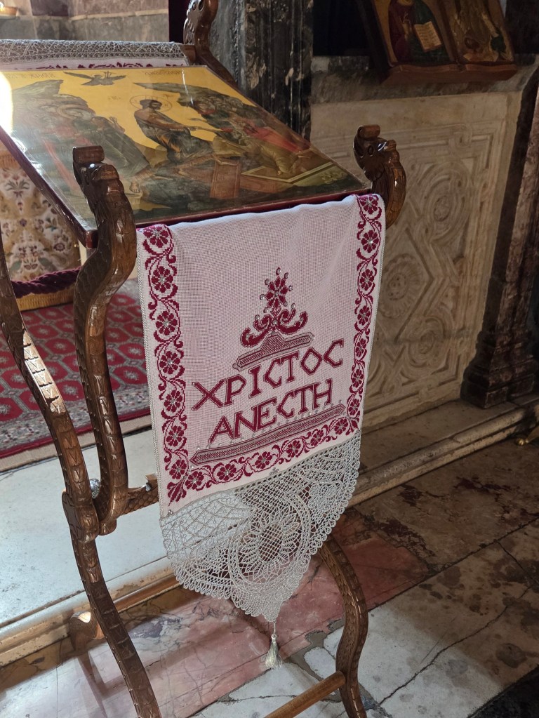 The monastery, however, is what really stuck out to me today. Everything there left me with a deep sense of awe. We could smell the incense and the wax of the candles. We could hear the life present there through the constant singing of the birds, different songs layered until they were indistinguishable. I would include the recording I took of the birds if I could. I don’t know how they managed to have that many birds living there, but the ambience created was magical.