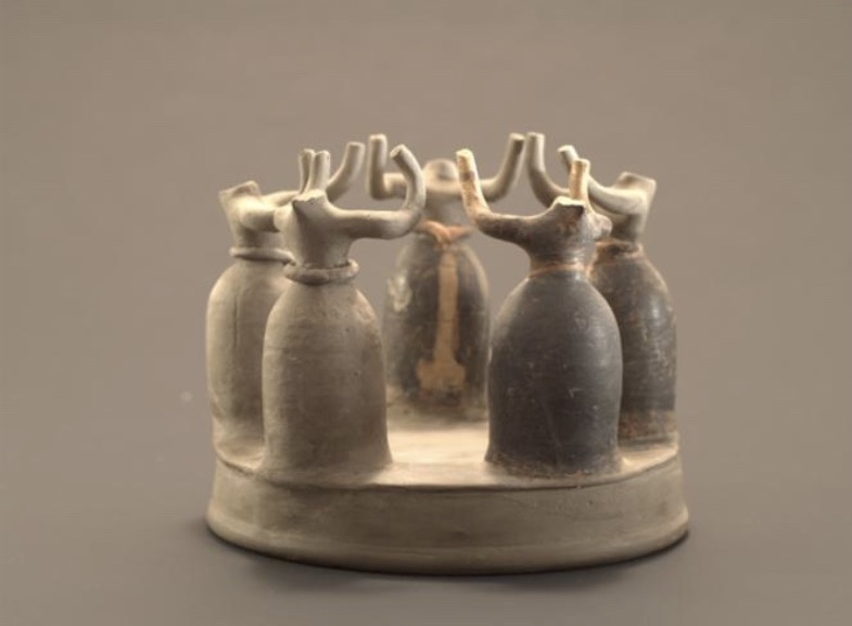 In the Protopalatial period, Minoan religion and art artifacts were at their peak. We know these are women because of their long and fluffy skirts. The object captivated me because they don’t have faces but yet I can imagine the expressions they must be sharing. It is believed that these women are participating in a ritual dance in celebration of a goddess. Minoans praised women and there were some priestesses, dancers, and other important figures since they were a religious society and would celebrate females. Some may assume these women are also taking part of a reenactment, perhaps recreating something that has been seen in a theatre. I would believe this object was a votive gift to a goddess and directly thanking women for fertility, or even protection. I have observed Minoan art as some have been made circular for example the Phaistos Disk, and this can be more symbolic as a possible votive or offering to a god/goddess. Although we have no written descriptions and analyzed captions about this object, it leaves space for the imagination about women participating in rituals and the meaning behind all the positive energy they are sharing with each other.