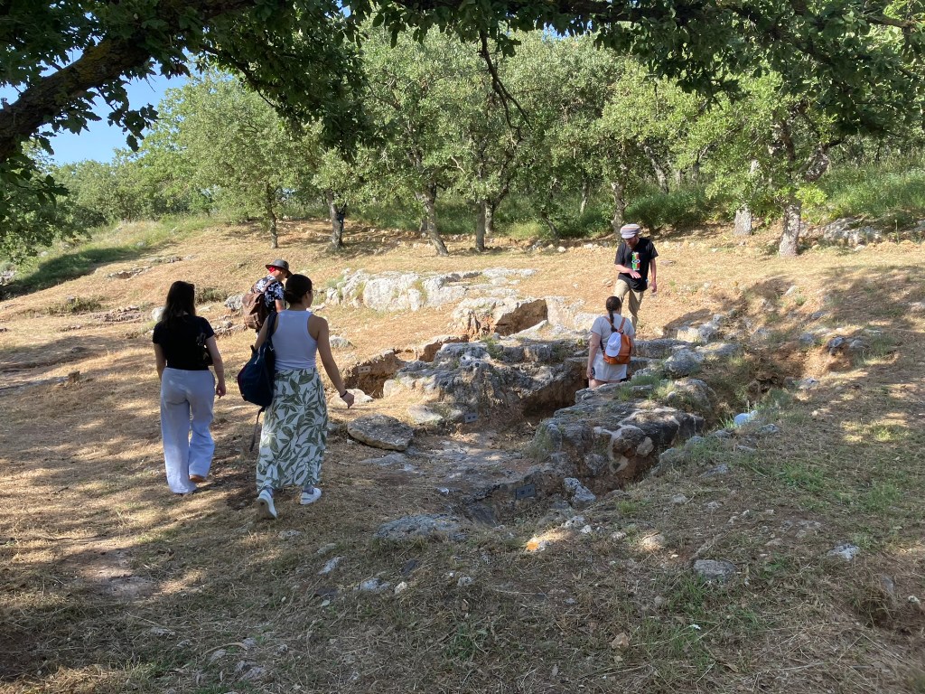 The day began as most have so far with perfect weather and a hearty breakfast, before we clambered onto the bus to continue our exploration of western Crete. Our first stop was the Minoan cemetery of Armeni, where we discovered an incredible number of Late Bronze Age chamber tombs, as well as an intriguing Mycenaean style tholos tomb. We were then let loose upon the hills to stick our heads into as many of the impressive limestone chambers as we pleased, accompanied by our new floppy-eared classmate.