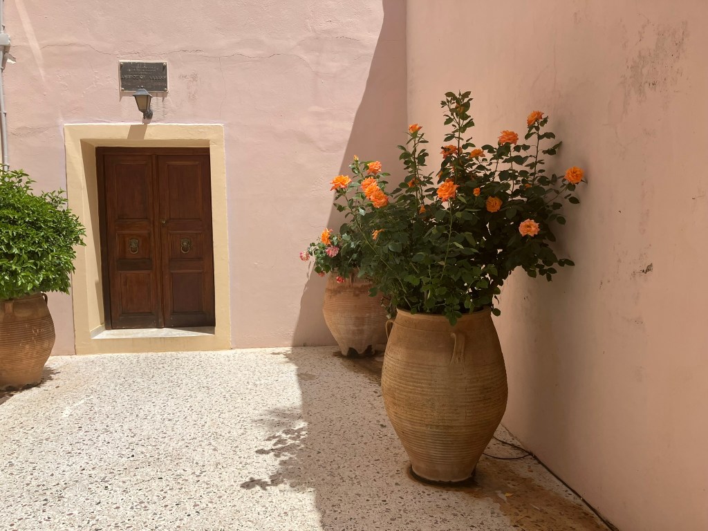 In the early afternoon, we visited the Arkadi Monastery, a gorgeous Byzantine religious complex which was besieged by Turkish soldiers during the 1866 Cretan Revolt. Before entering, we heard our last site presentation of the trip, during which Julia spoke about the struggles of the Cretans for their independence from the Ottoman Empire and informed us of the moving events that took place on the site. Rather than surrender to their oppressors, the rebels, monks, and hundreds of women and children that were hiding in the cellar during the siege ignited the gunpowder stores and martyred themselves for the cause of their freedom. This knowledge weighs upon all of us, as we take in beauty of the Renaissance style architecture.