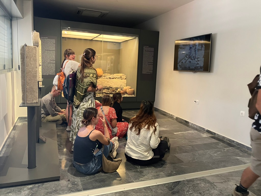 Later, we make our way to the archeological museum of Eleutherna, to see what was recovered from the various Archaic, Hellenistic, Roman and Byzantine sites of the area. Amongst the various artifacts and gaggles of school kids, we gather around to watch the informational videos. They are evidently well-meaning, and offer a creative way of presenting information, though come across a little silly in practice.